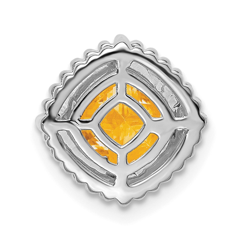 14k White Gold 6.5mm Cushion Citrine Beaded Edge Chain Slide