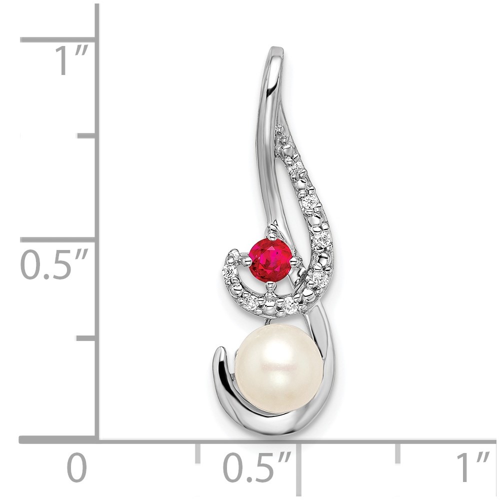 14k White Gold 6-7mm Round White Freshwater Cultured Pearl/Ruby/Diamond Slide Fits up to 4mm Fancy Omega Only