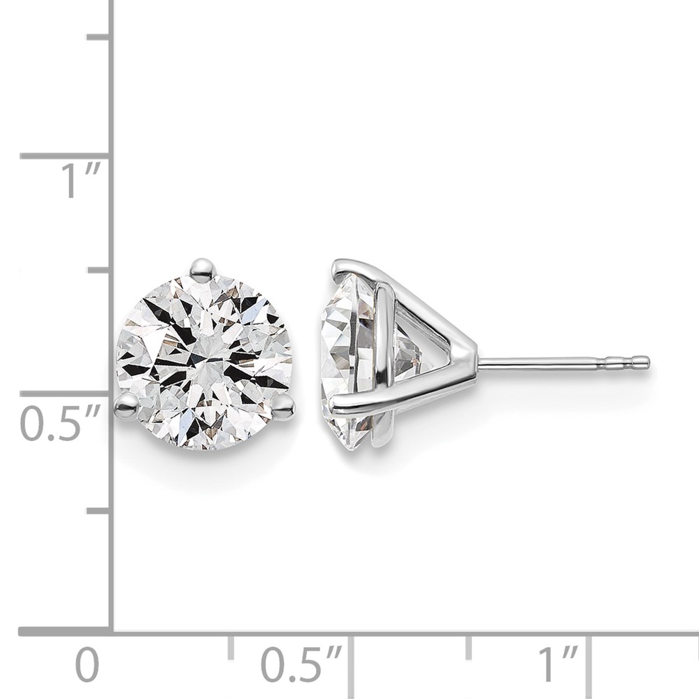 14k White Gold 6 carat Lab Grown Diamond VS+ F+ Round Complete Three Prong Stud Earrings