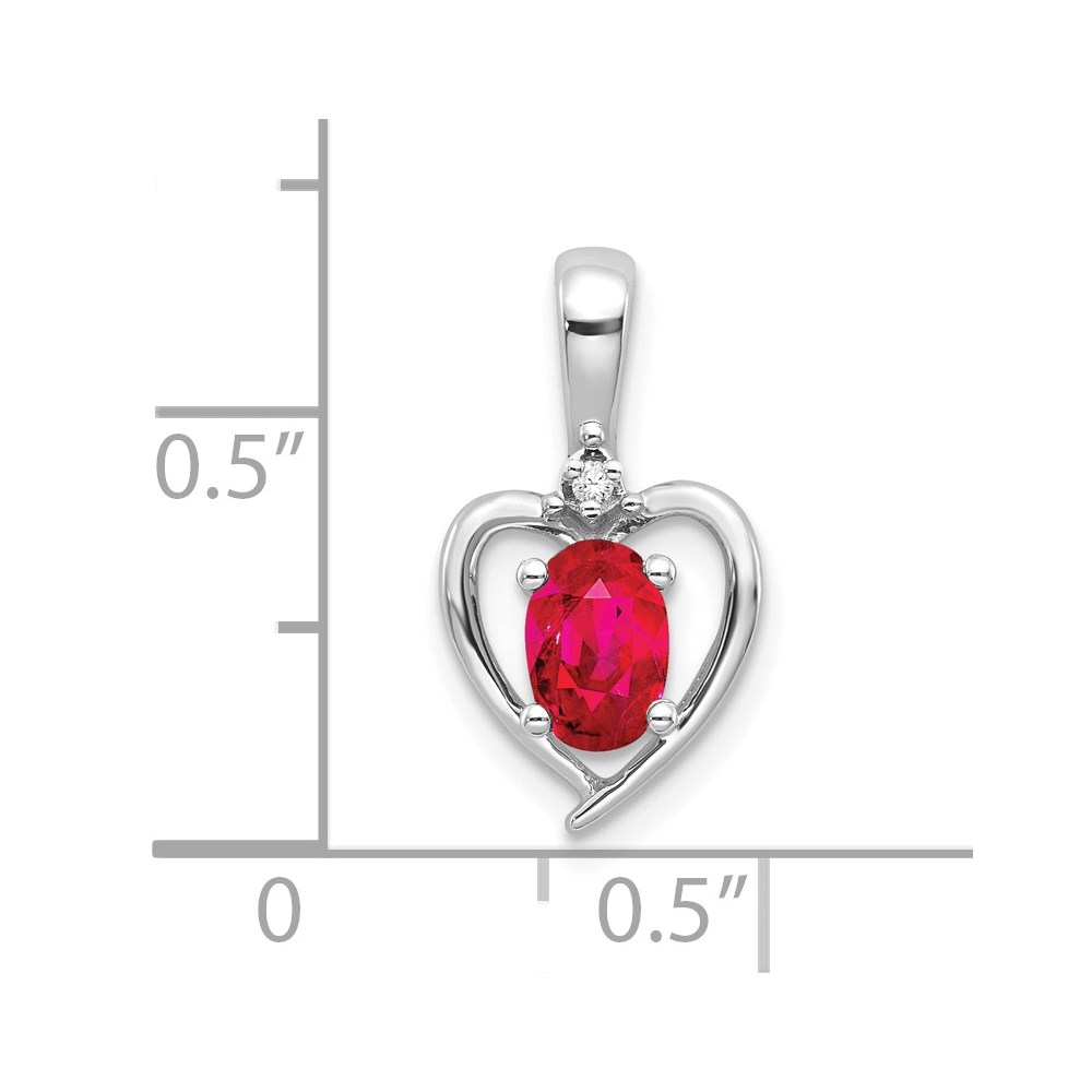14k White Gold 6×4 Oval July/Ruby and Diamond Heart Pendant