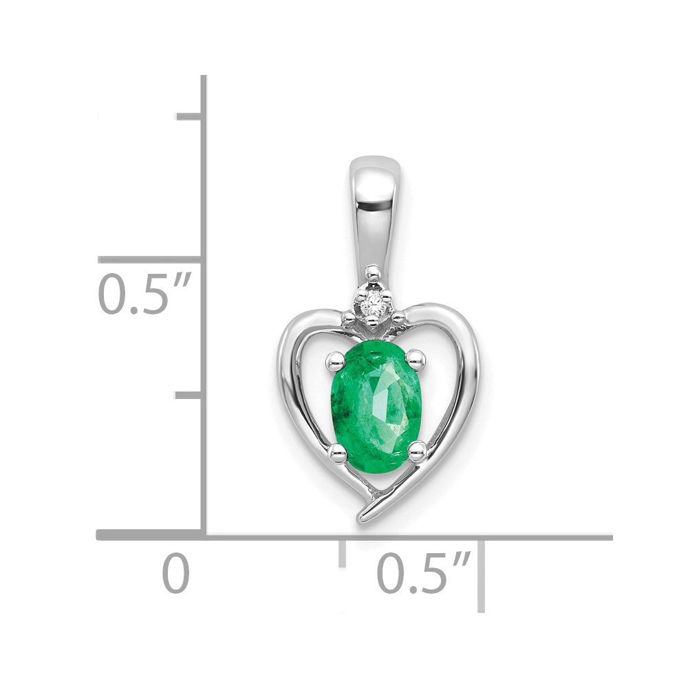 14k White Gold 6×4 Oval May/Emerald and Diamond Heart Pendant