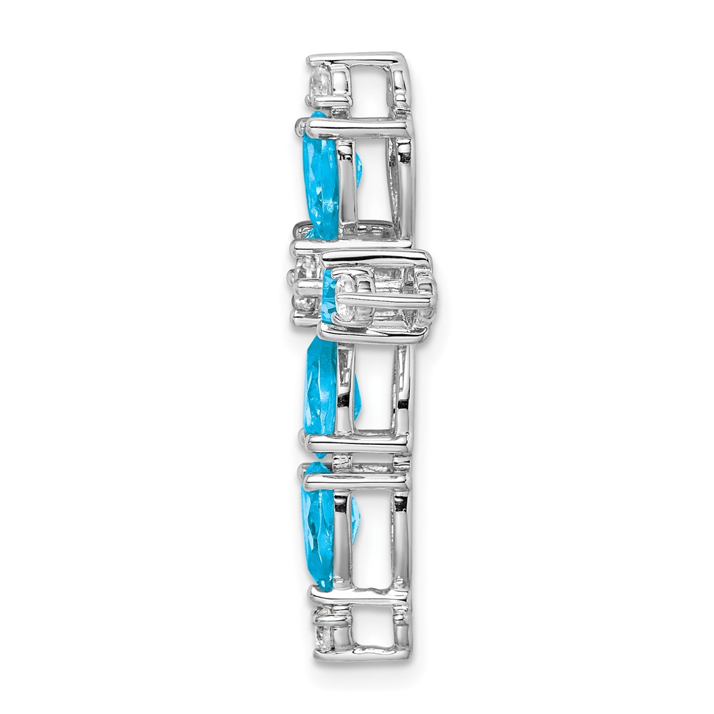 14k White Gold 6x4mm Pear Blue Topaz and Diamond Cross Chain Slide