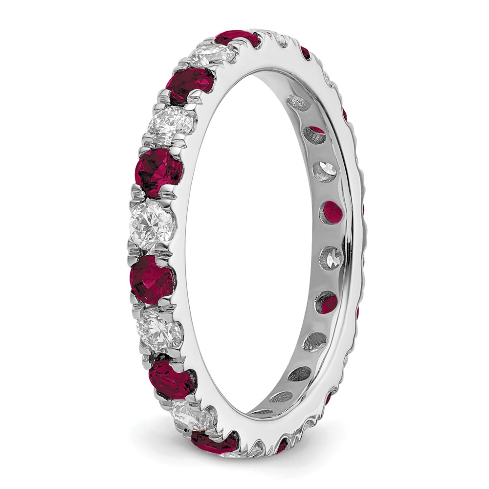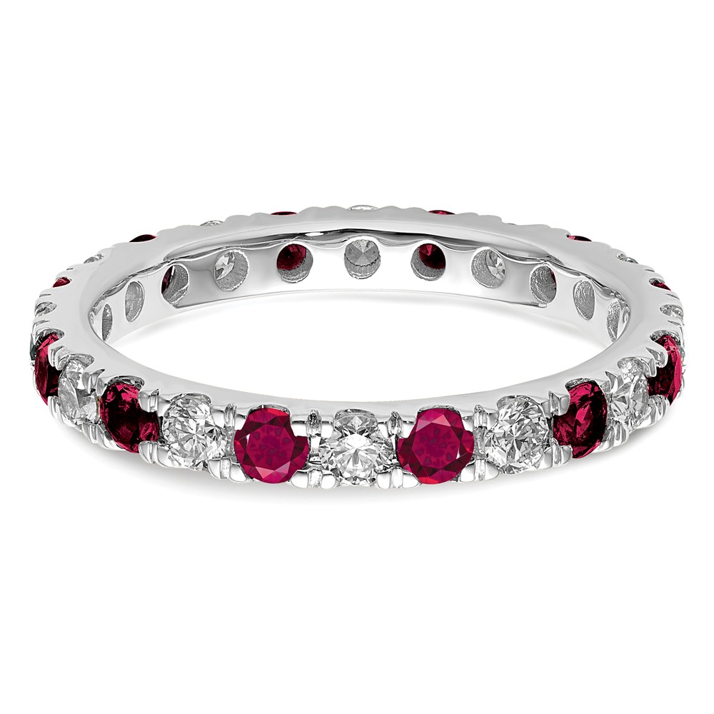 14k White Gold 7/8 carat Lab Grown Diamond VS/SI+ G+ and Lab Created Ruby Size 8 Eternity Band