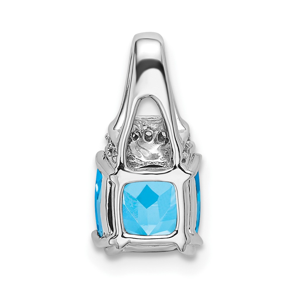 14k White Gold 7mm Cushion Blue Topaz and Diamond Chain Slide