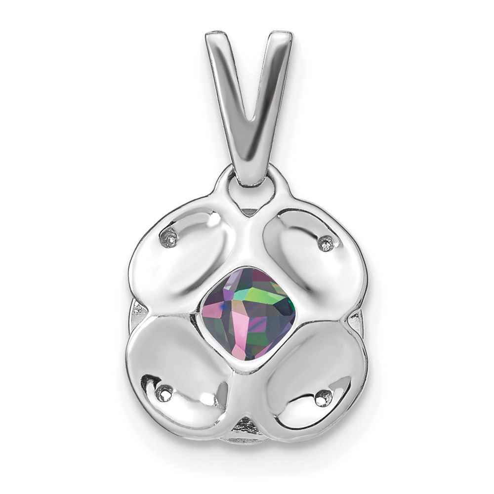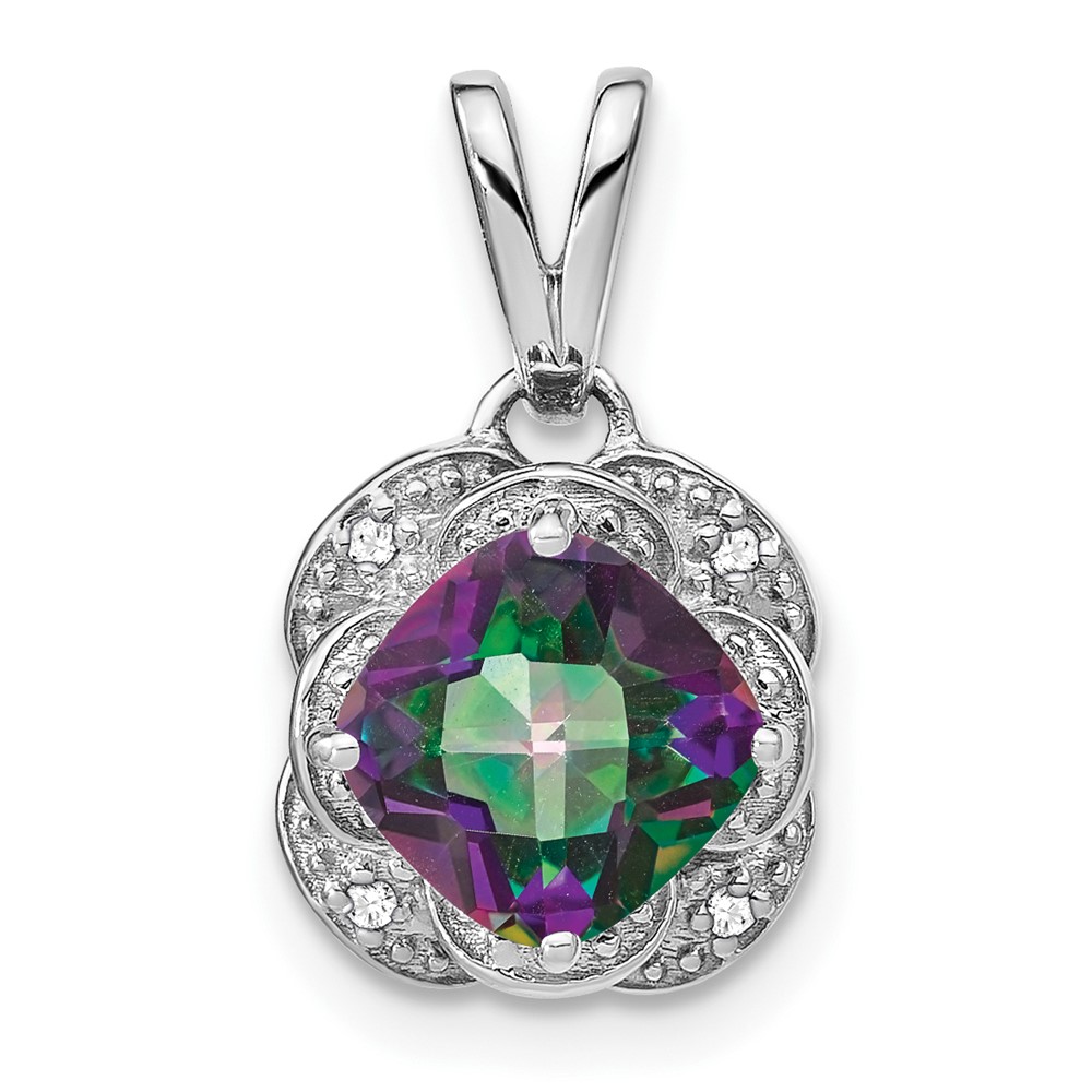 14k White Gold 7mm Cushion Mystic Fire Topaz and Diamond Pendant