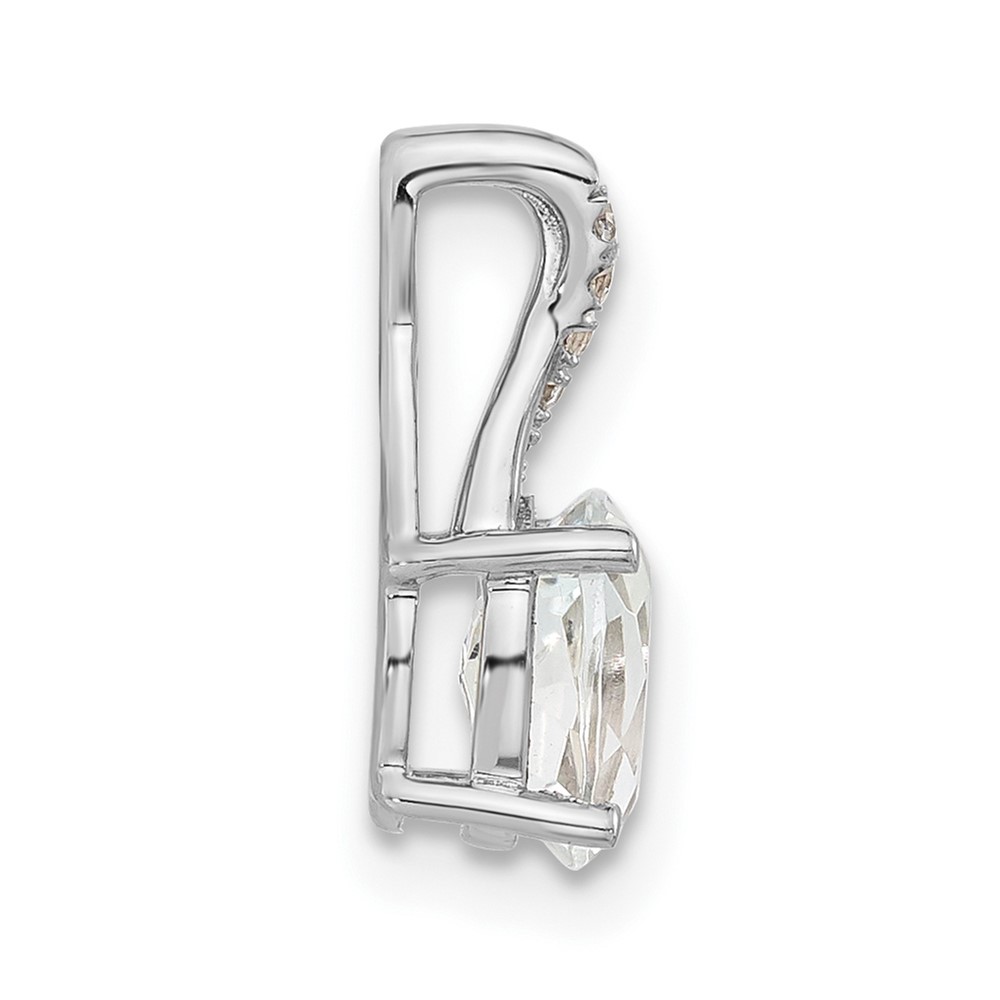 14K White Gold 7×5 Oval April/White Topaz and Diamond Pendant