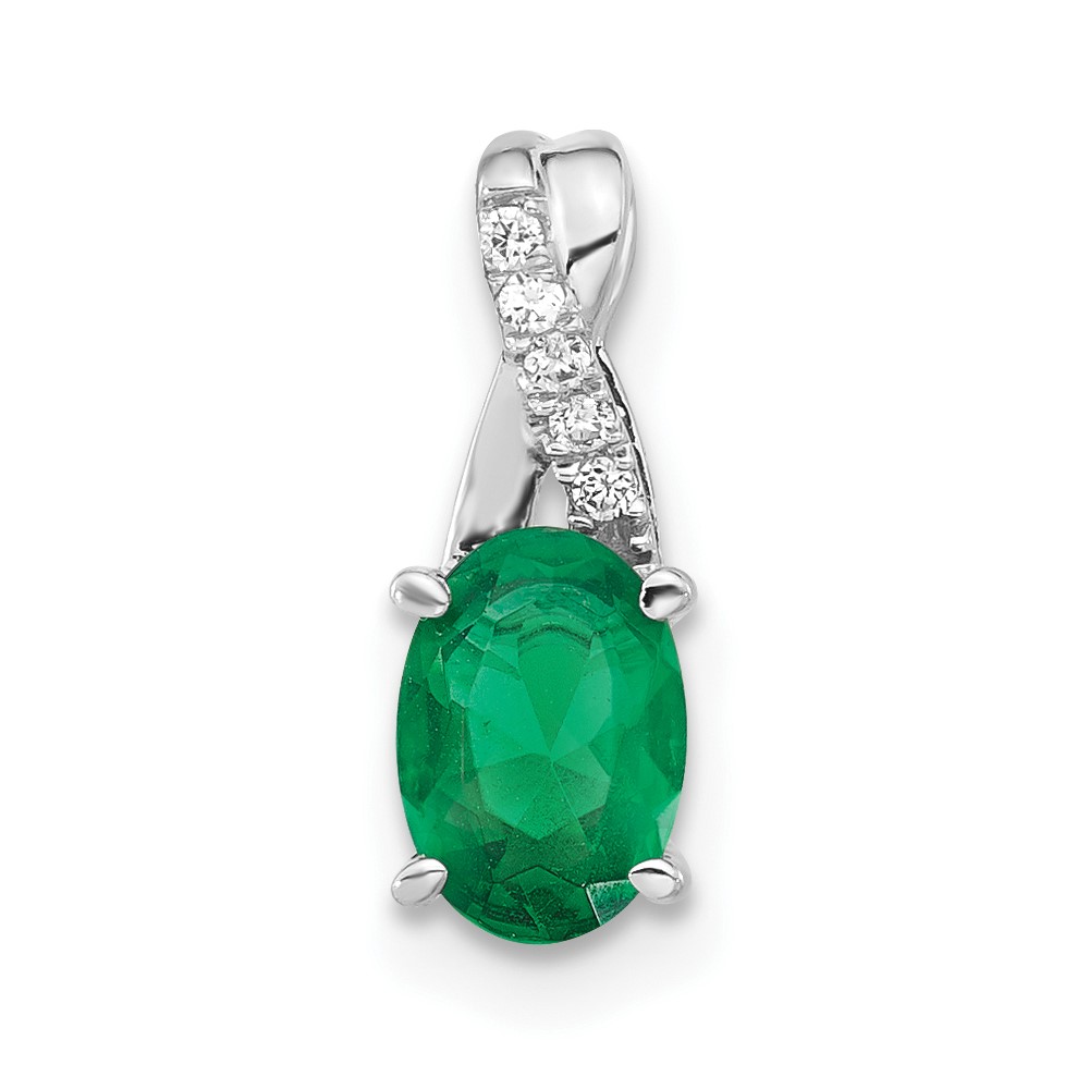 14K White Gold 7×5 Oval May/Lab Created Emerald and Diamond Pendant