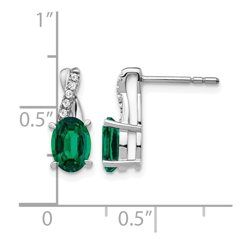 14k White Gold 7x5mm Oval Lab Created Emerald and Diamond Post Earrings