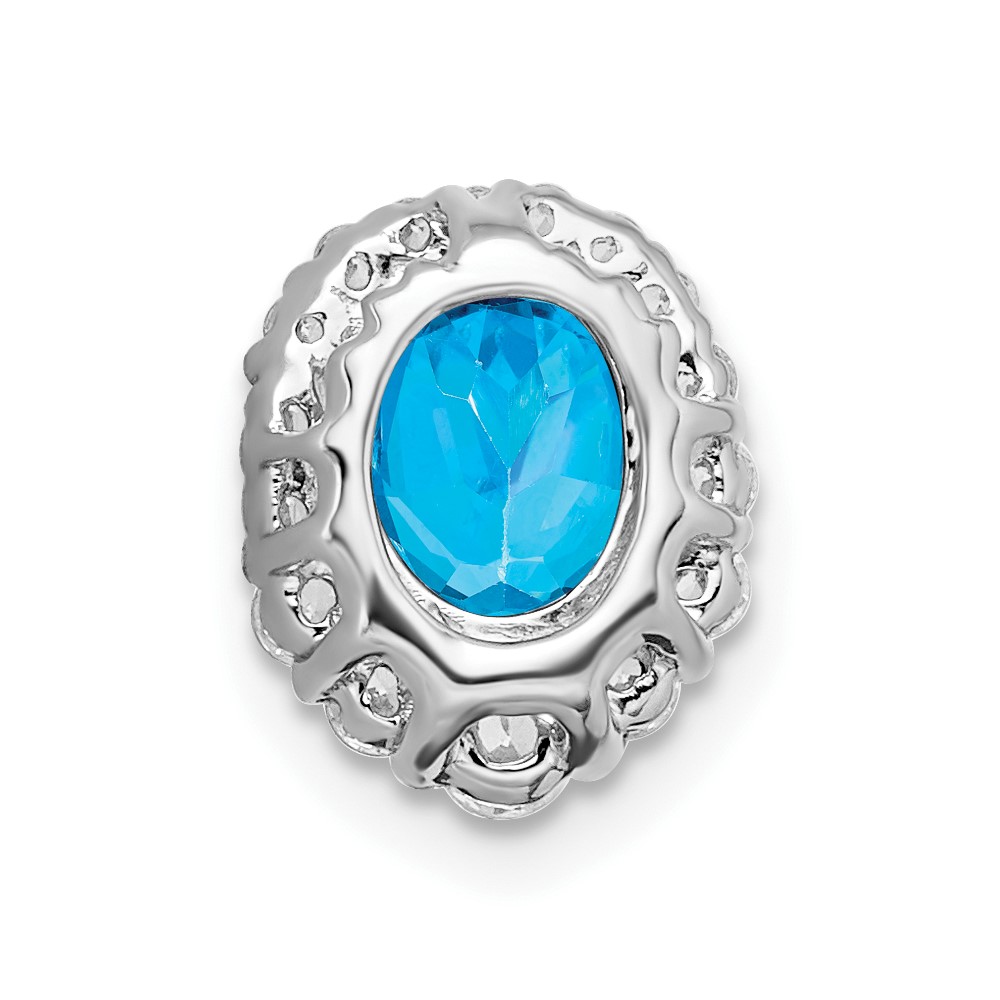 14k White Gold 8x6mm Oval Blue Topaz and Diamond Halo Chain Slide