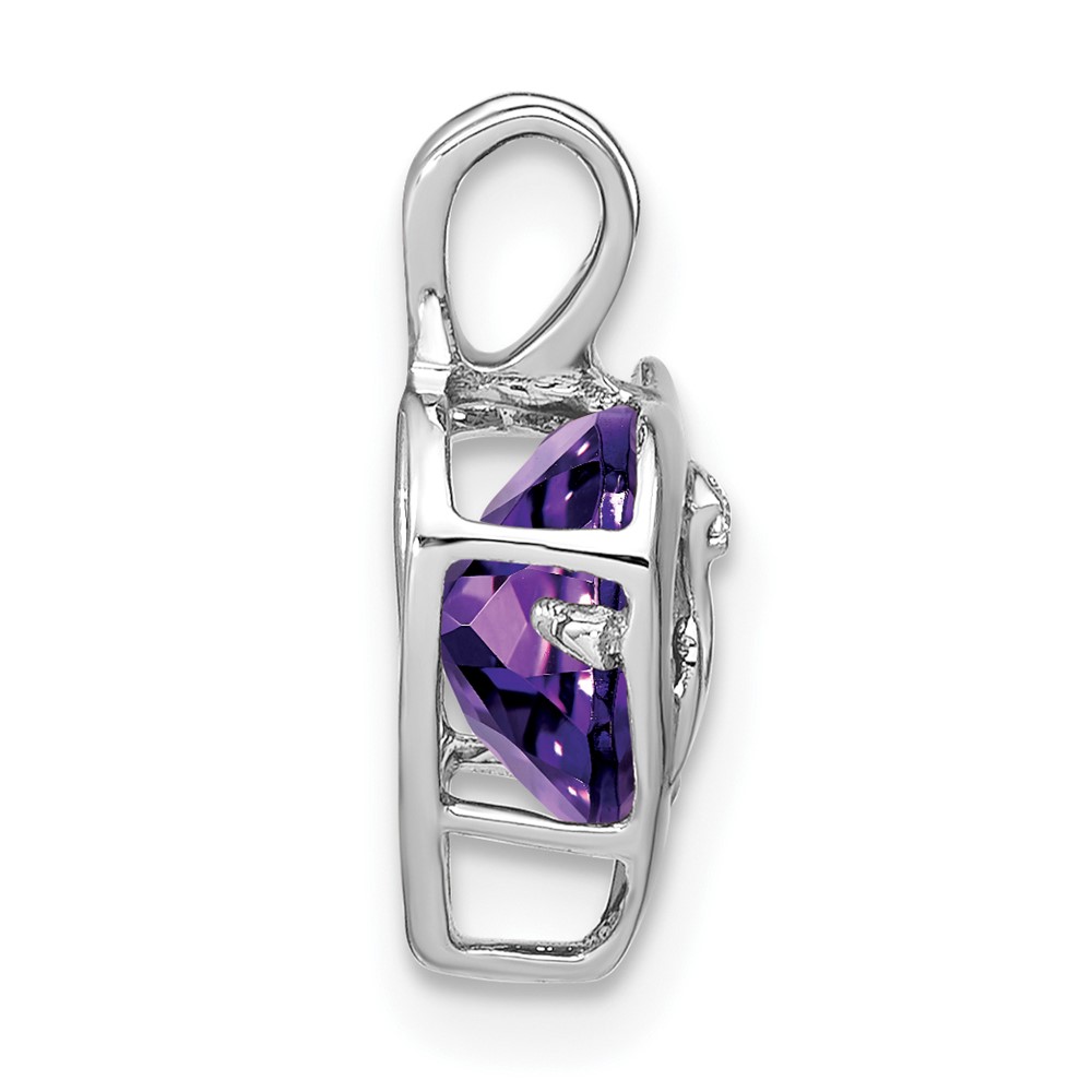 14k White Gold Amethyst and Diamond MOM Heart Pendant