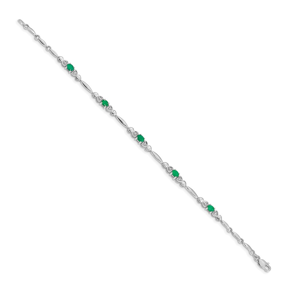 14k White Gold Complete Diamond and Oval Emerald Heart Design 7 inch Bracelet