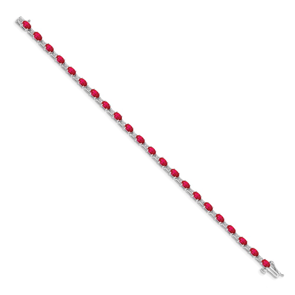 14k White Gold Complete Diamond and Oval Ruby 7 inch Bracelet