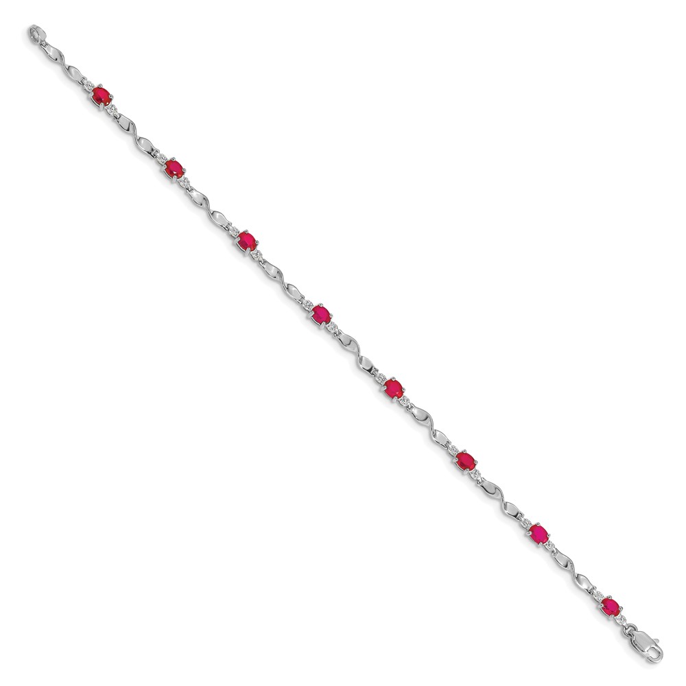 14k White Gold Complete Diamond and Oval Ruby Twisted Link 7 inch Bracelet
