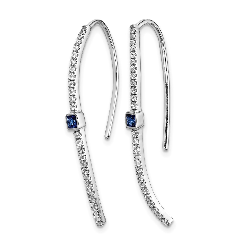 14k White Gold Curved Diamond and 2mm Princess Sapphire Wire Earrings