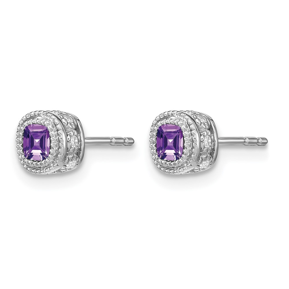 14k White Gold Cushion Amethyst and Diamond Earrings