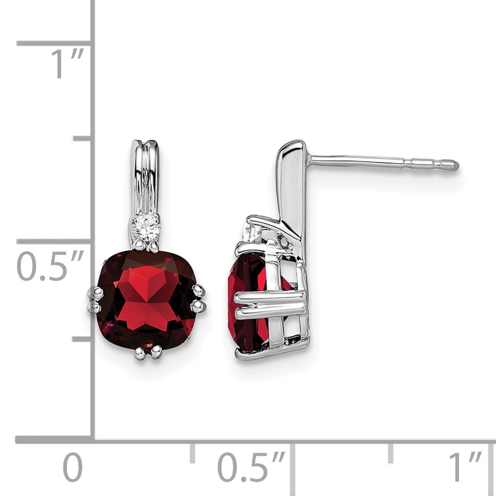 14k White Gold Cushion Garnet and Diamond Earrings