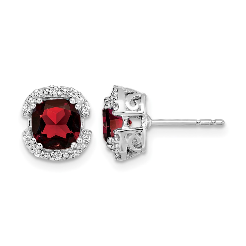 14k White Gold Cushion Garnet and Diamond Halo Earrings