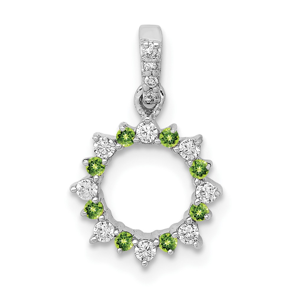 14k White Gold Diamond and .08 Peridot Fancy Circle Pendant