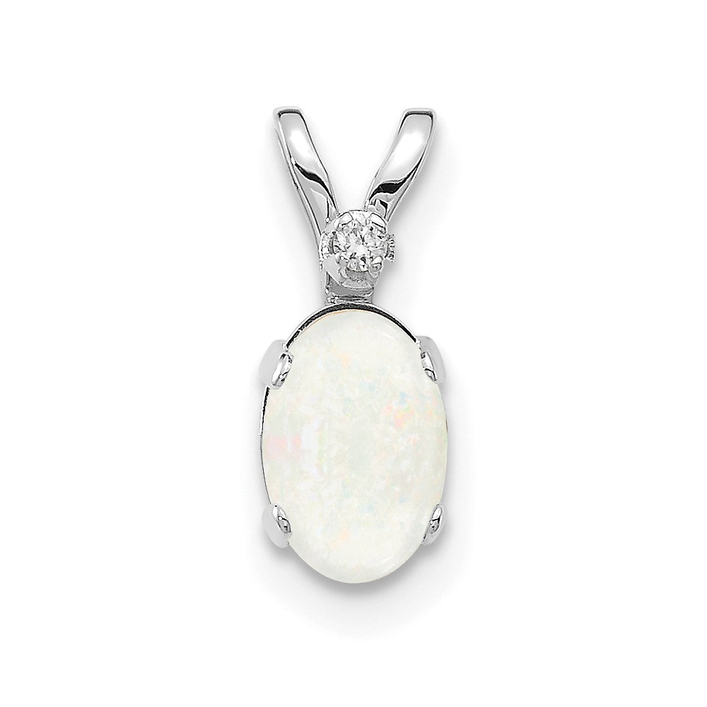 14K White Gold Diamond and 6×4 Oval October/Opal Birthstone Pendant