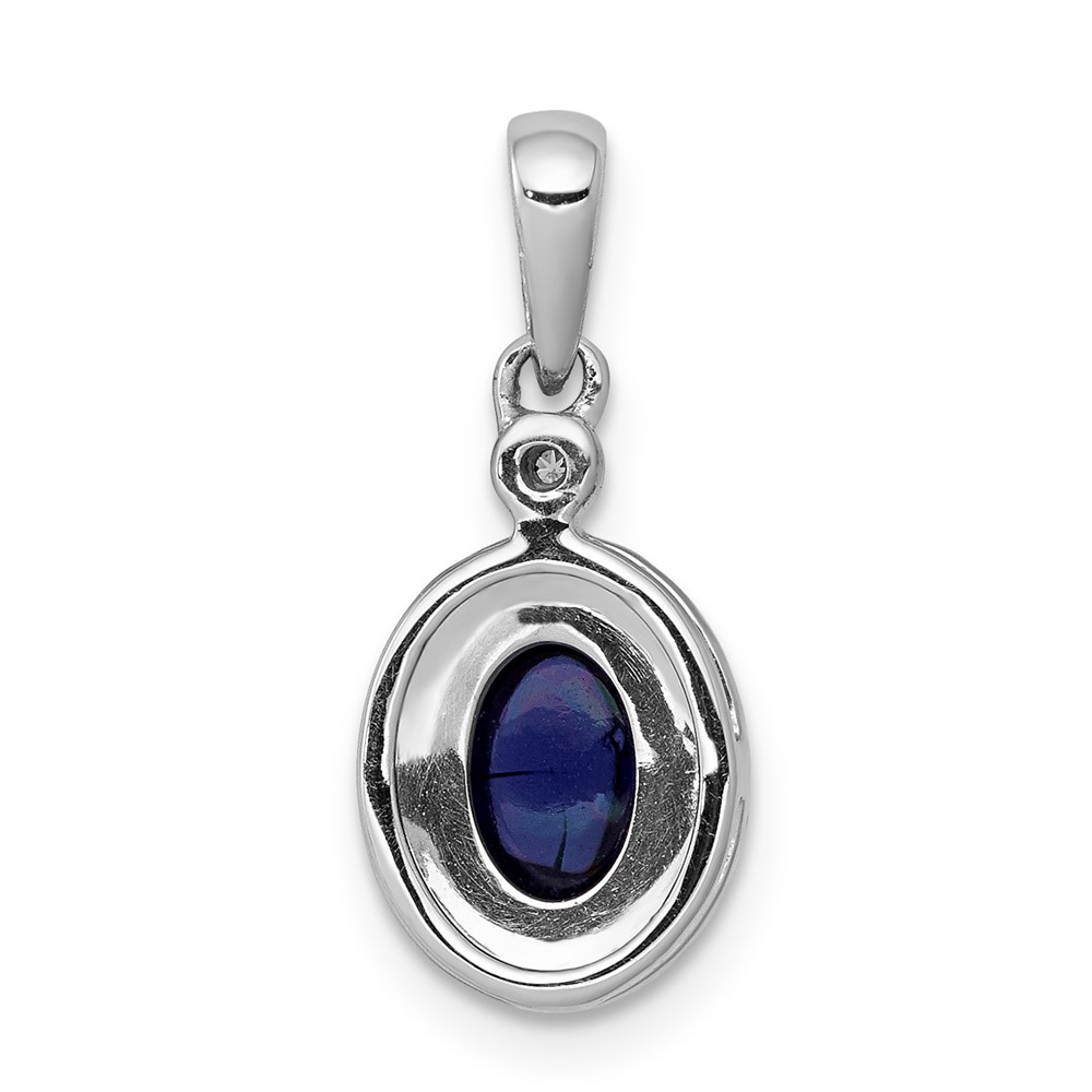 14k White Gold Diamond and Cabochon Sapphire Halo Pendant