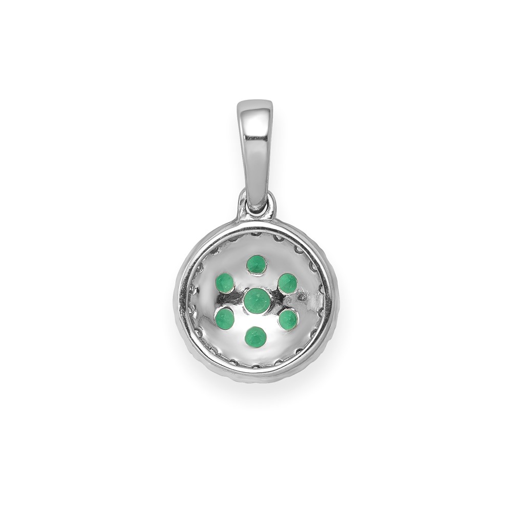 14k White Gold Diamond and Emerald Cluster Halo Pendant