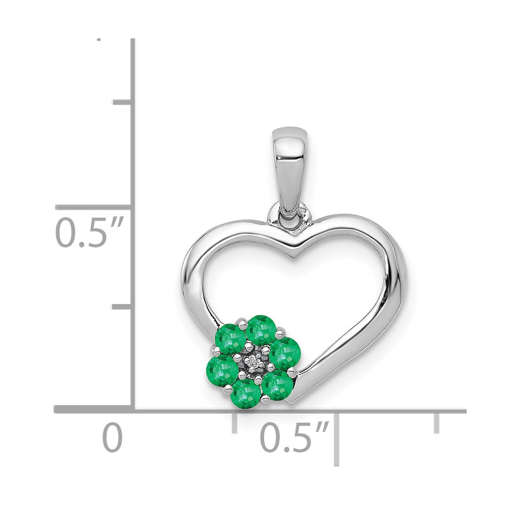14k White Gold Diamond and Emerald Flower and Heart Pendant