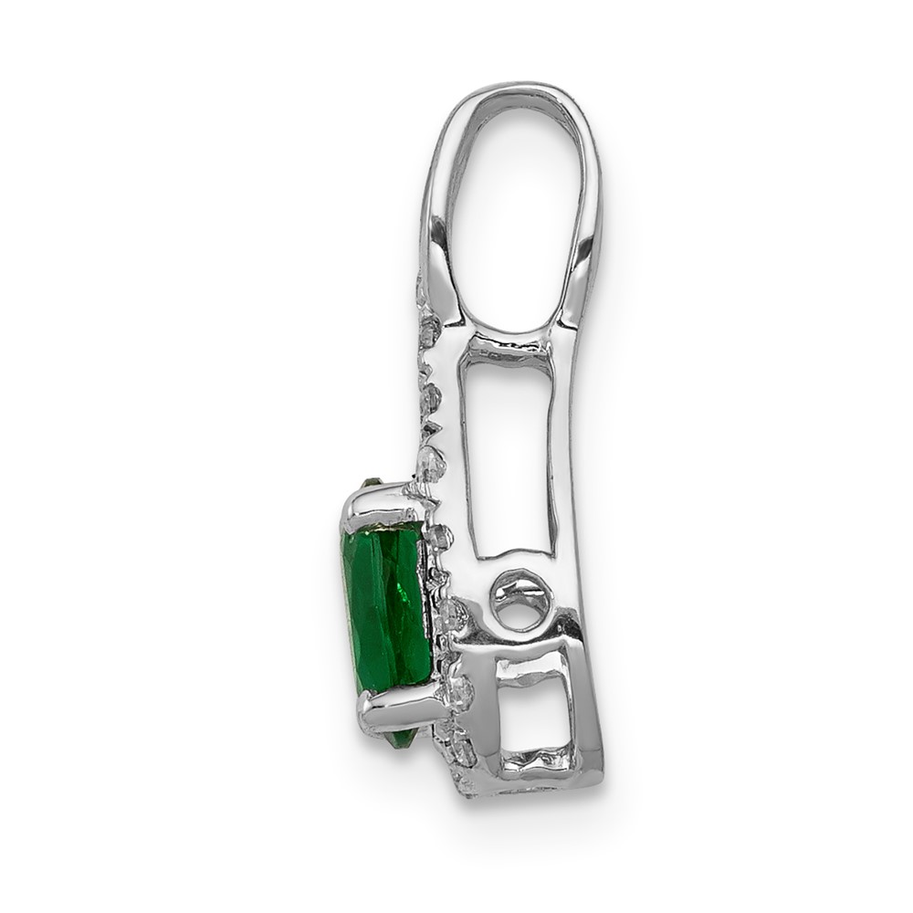 14K White Gold Polished Diamond and Emerald Heart Chain Slide