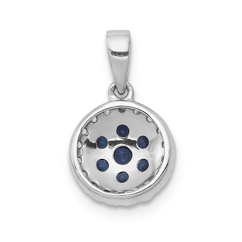 14k White Gold Diamond and Sapphire Cluster Halo Pendant