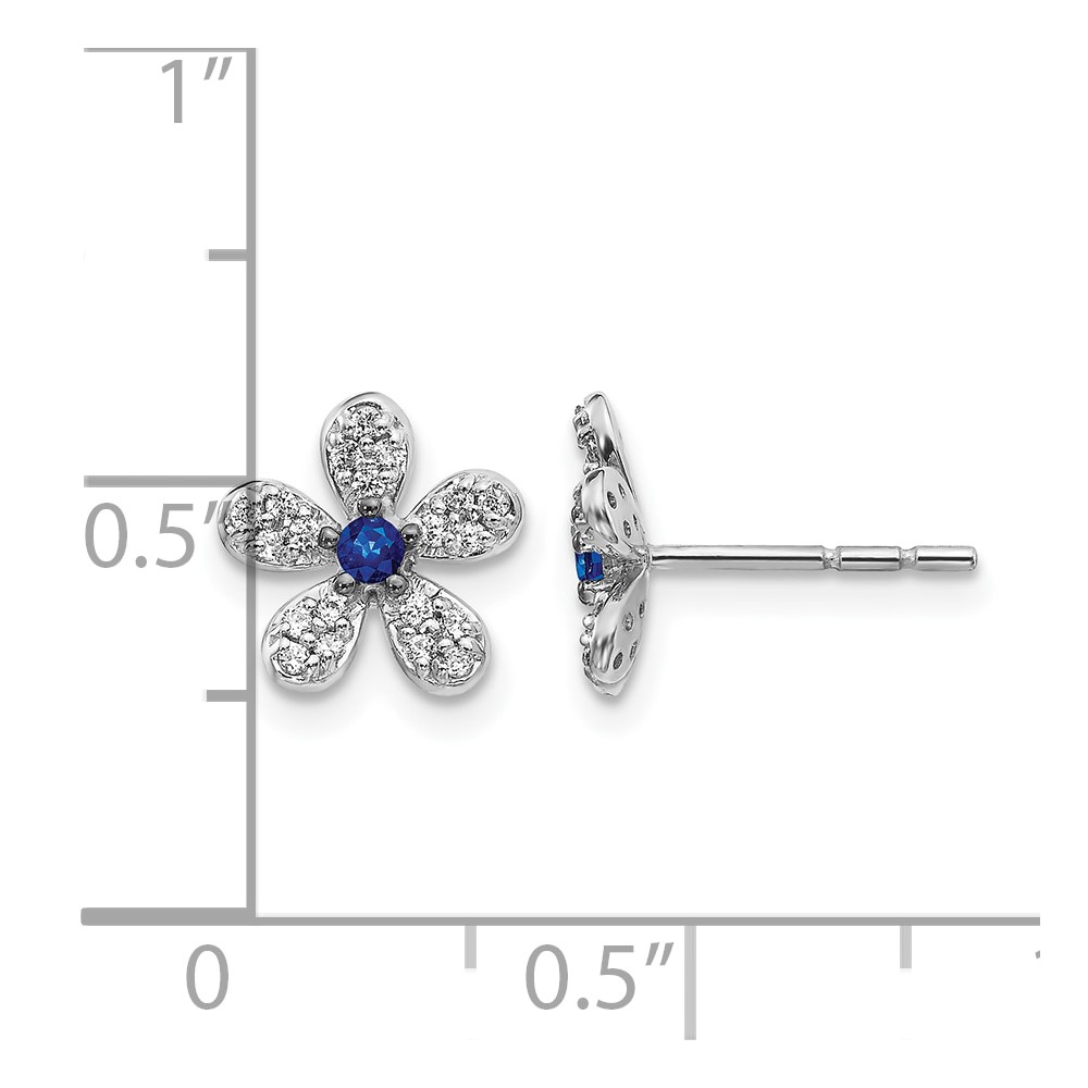 14k White Gold Diamond and Sapphire Flower Post Earrings