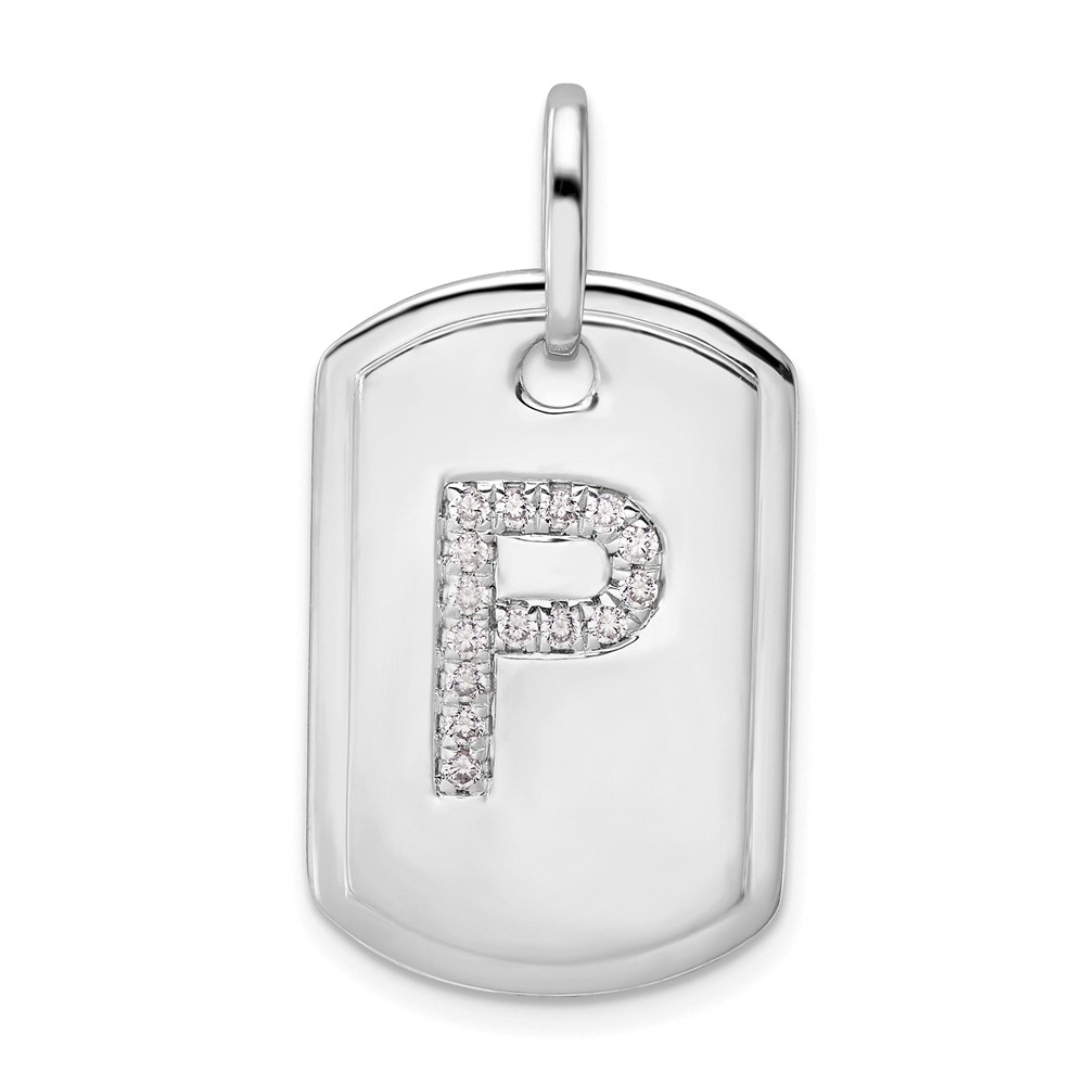 14K White Gold Diamond Initial P Dog Tag Charm