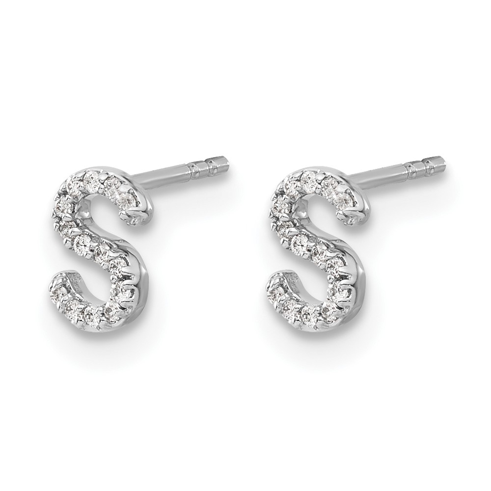 14k White Gold Diamond Initial S Post Earrings