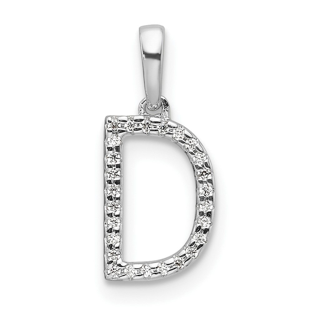 14K White Gold Diamond Letter D Initial Pendant