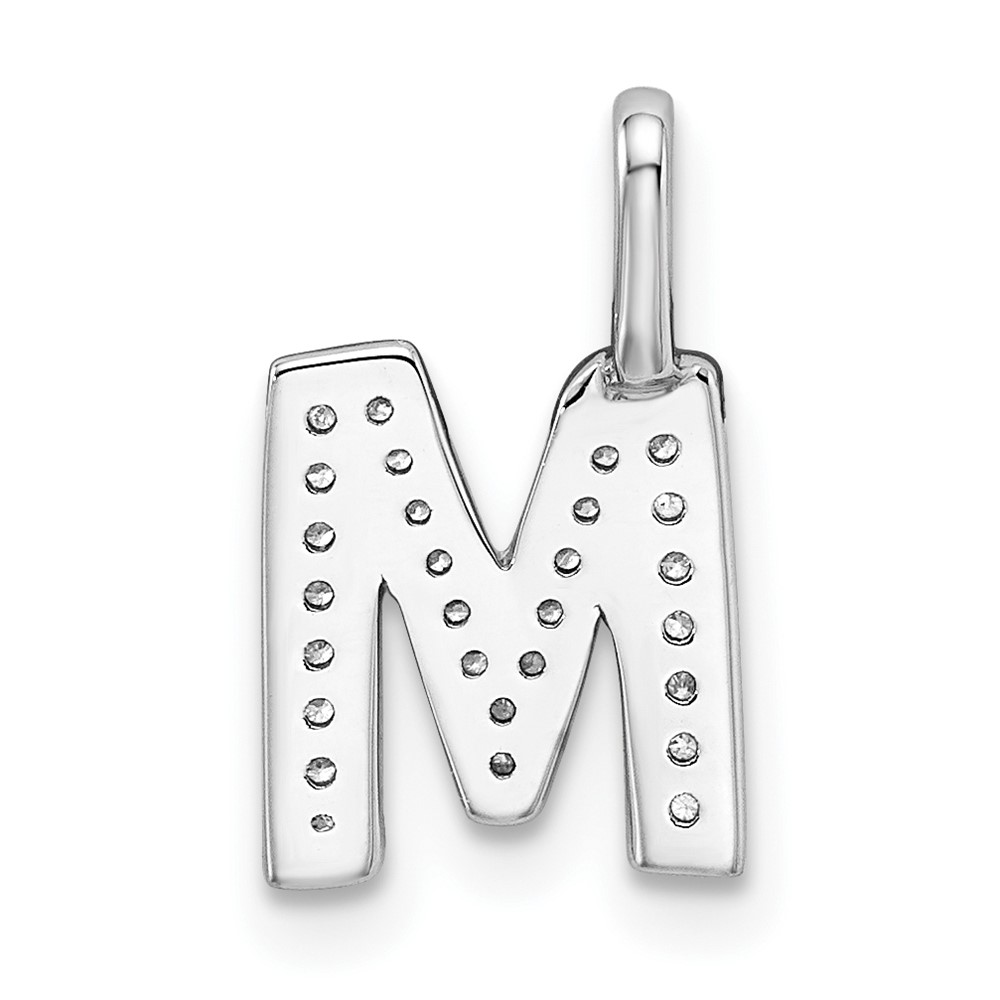 14K White Gold Diamond Letter M Initial Pendant