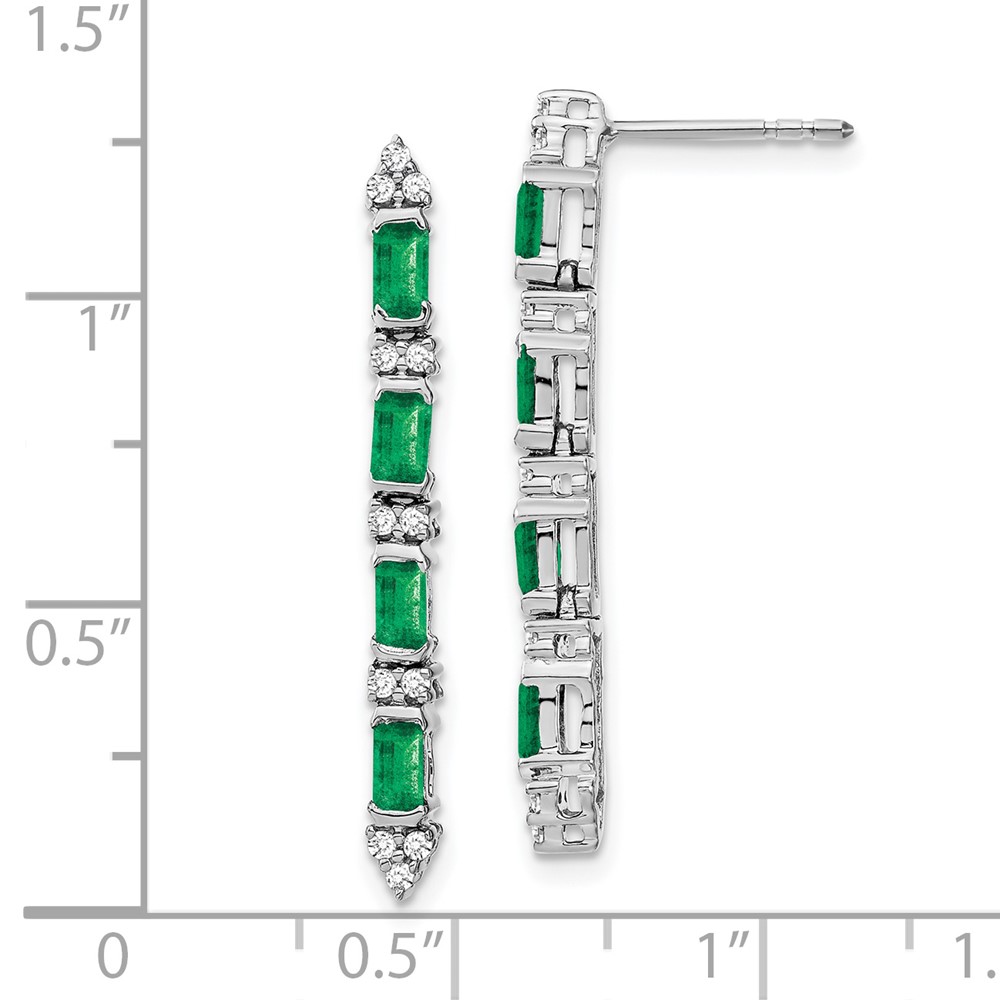 14k White Gold Emerald-cut Emerald and Diamond 4-stone Dangle Post Earrings