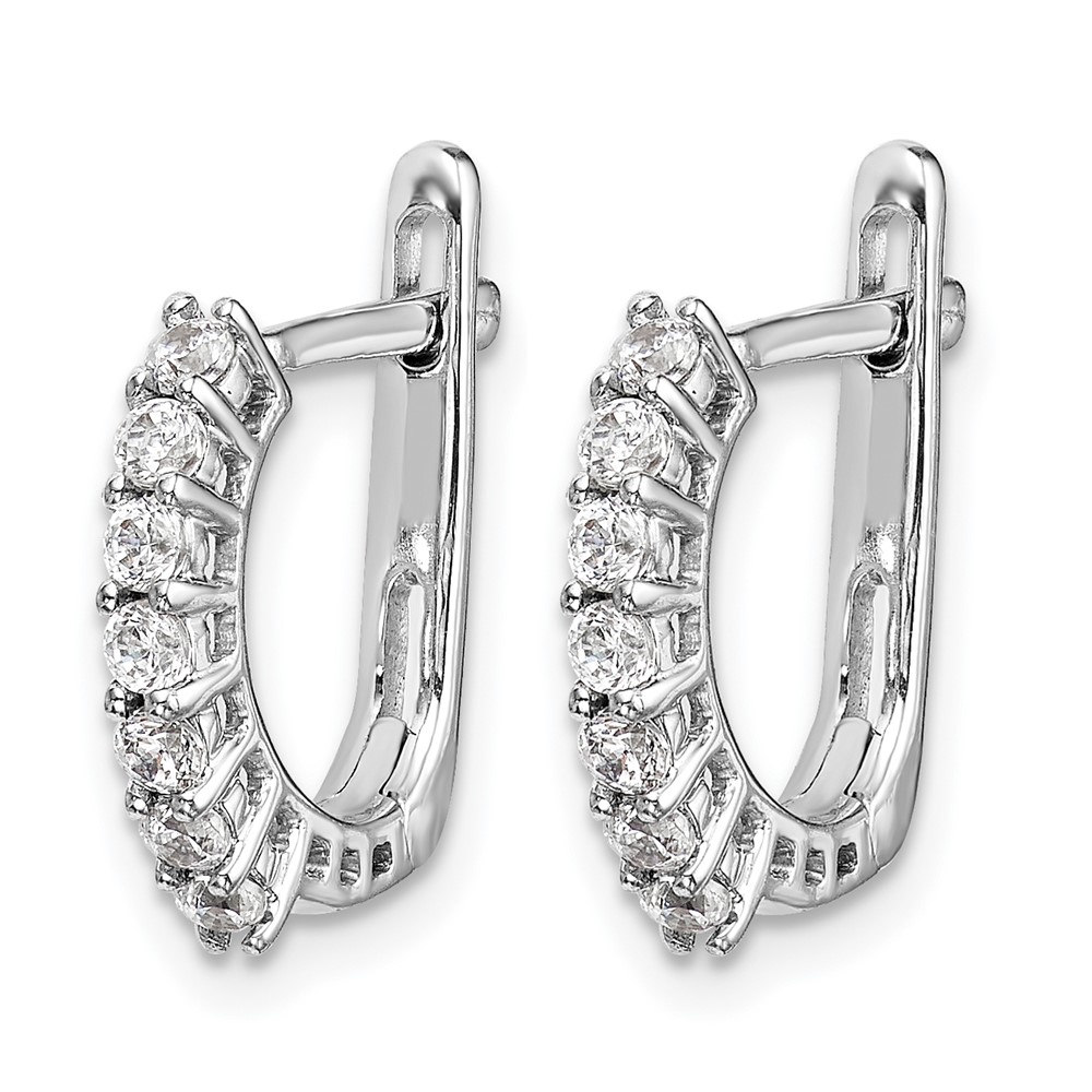 14k White Gold 2-row Baguette Diamond Omega Back Hoop Earrings