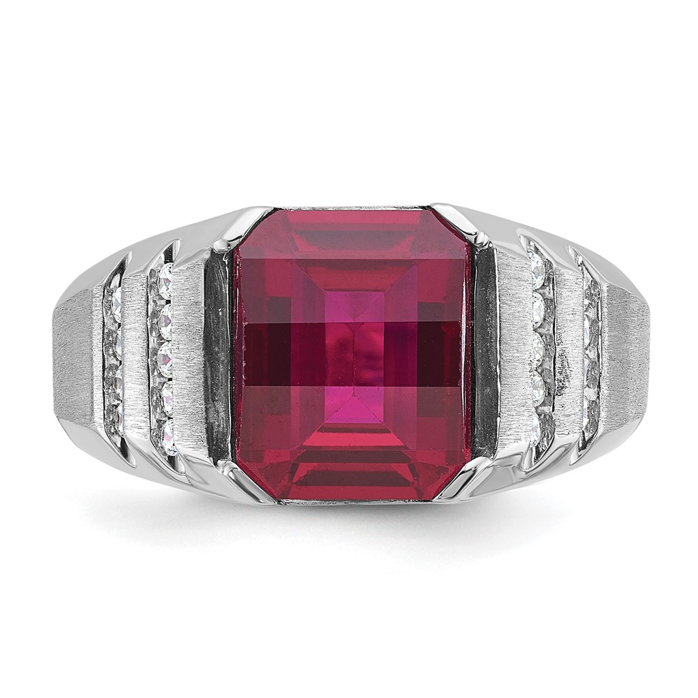 14k White Gold IBGoodman Men’s Created Ruby and 1/5 carat Diamond Complete Ring