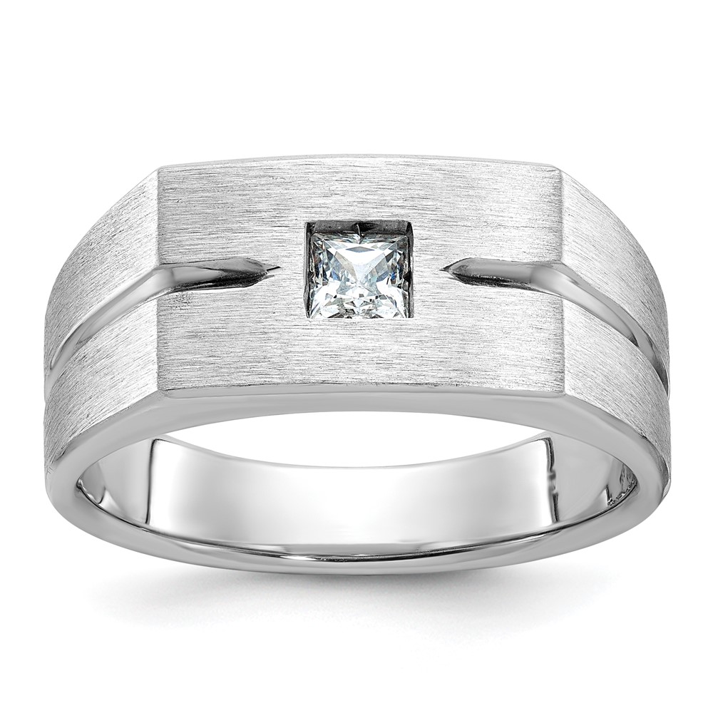 14k White Gold IBGoodman Men’s Polished and Satin 1/4 carat Diamond Complete Ring