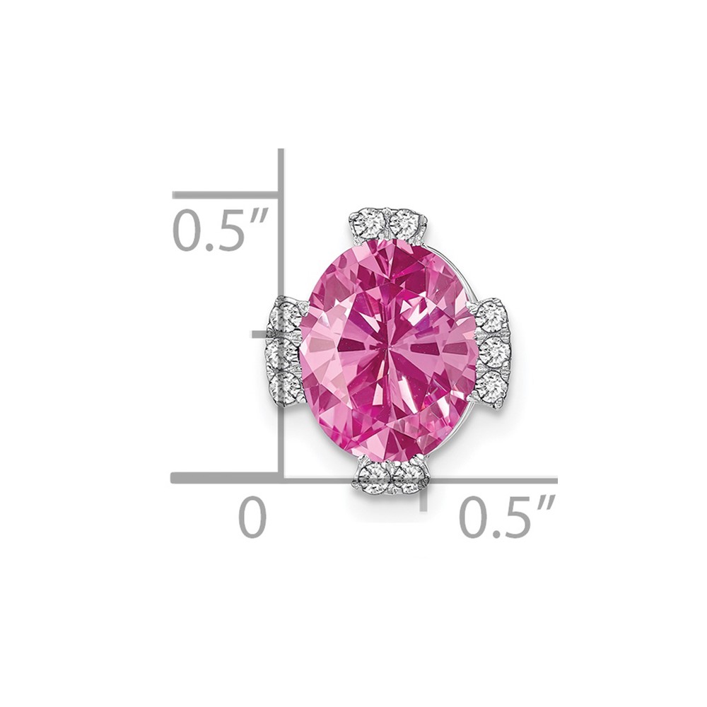 14k White Gold Oval Lab Created Pink Sapphire and Diamond Chain Slide