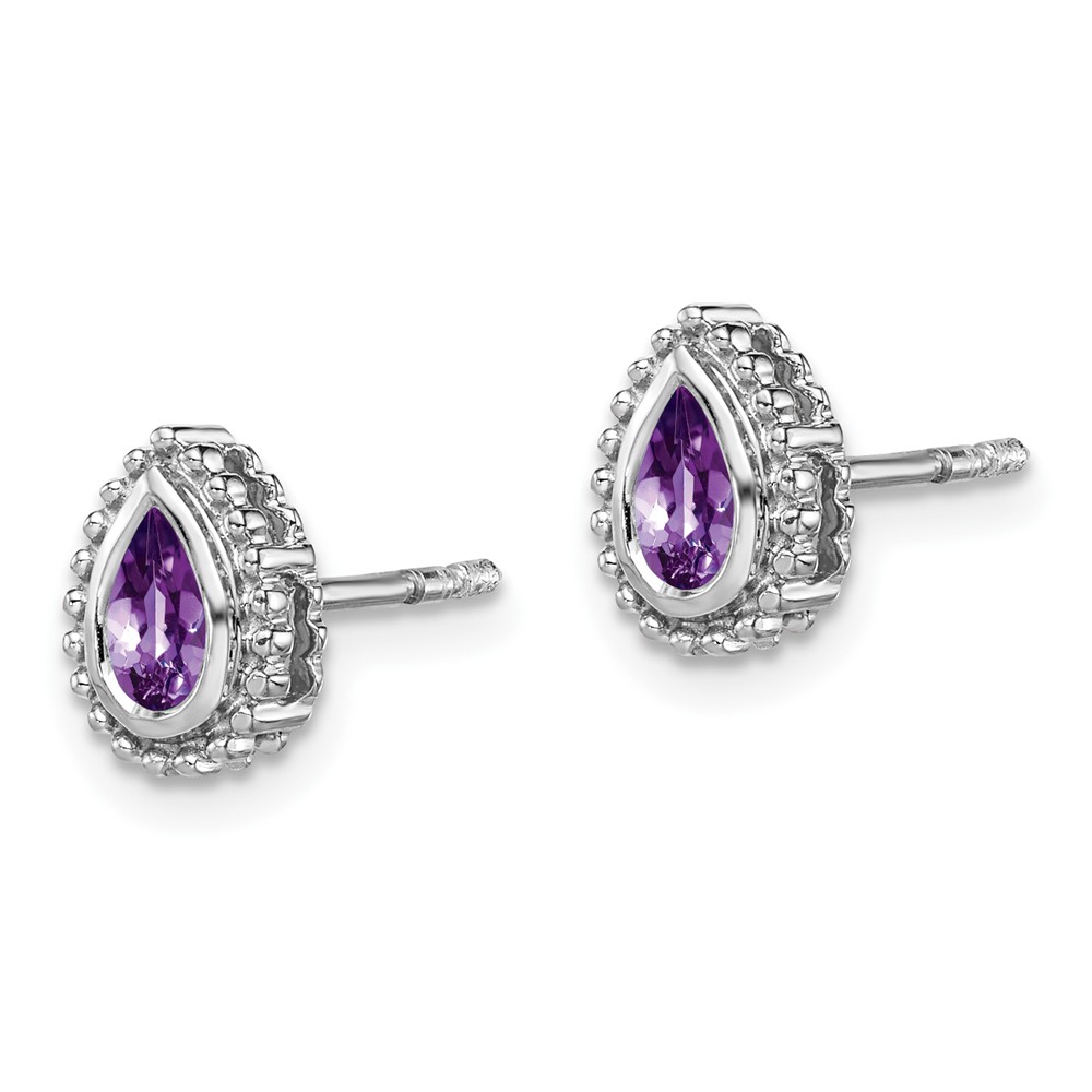 14k White Gold Pear Amethyst Post Earrings