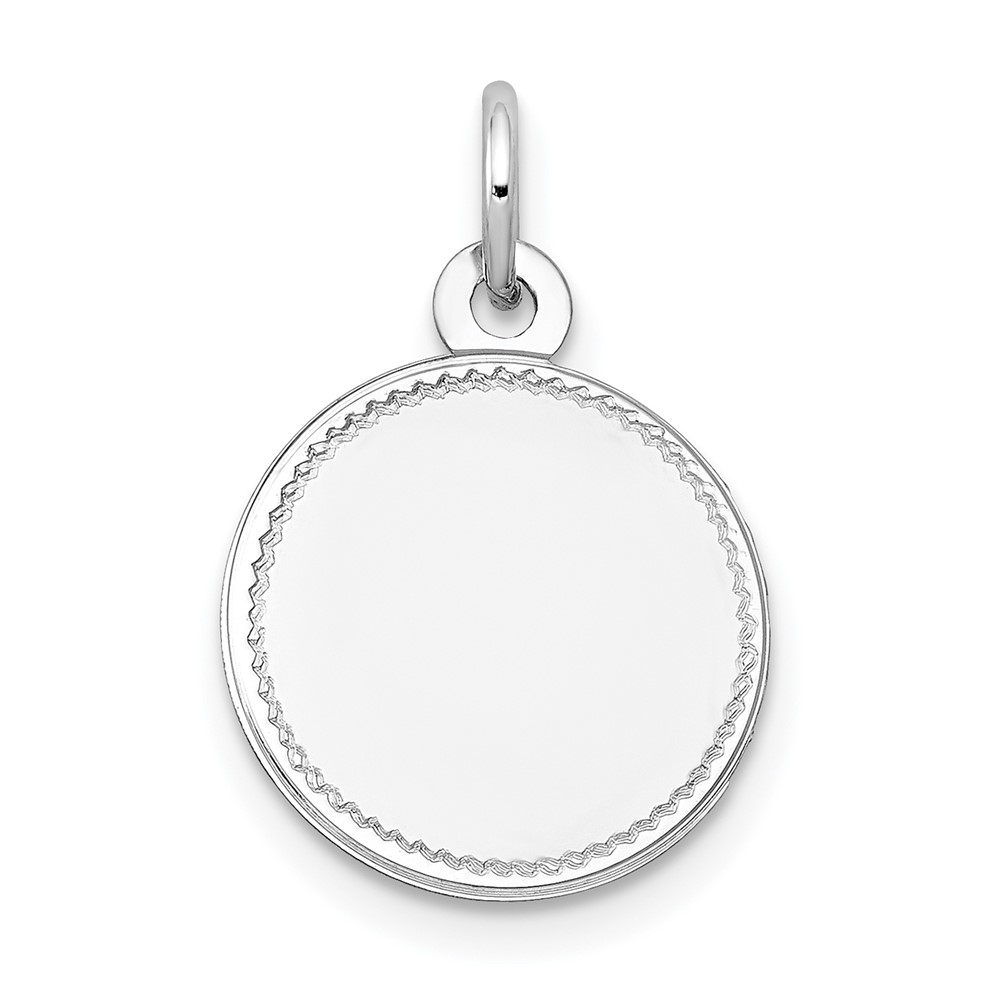 14k White Gold Plain with Zig-Zag Edge .018 Gauge Round Engravable 13mm Disc Charm