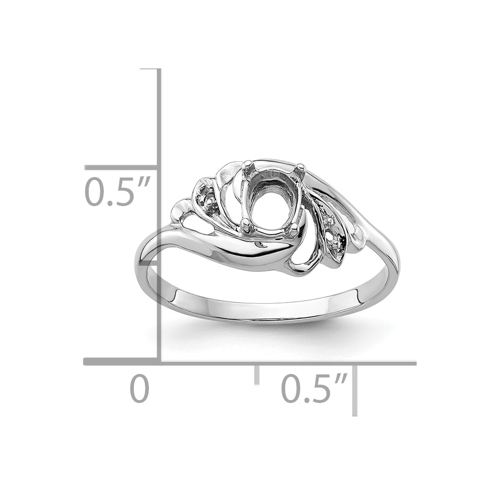 14k White Gold Polished .02ct. Diamond & 6×4 Oval Gemstone Ring Mounting