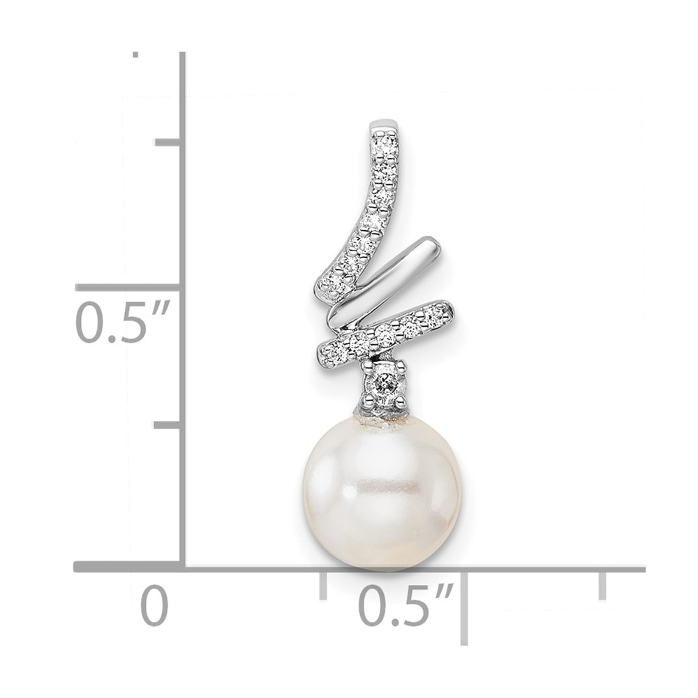 14K White Gold Polished 1/15 carat Diamond and White Freshwater Cultured Pearl Chain Slide