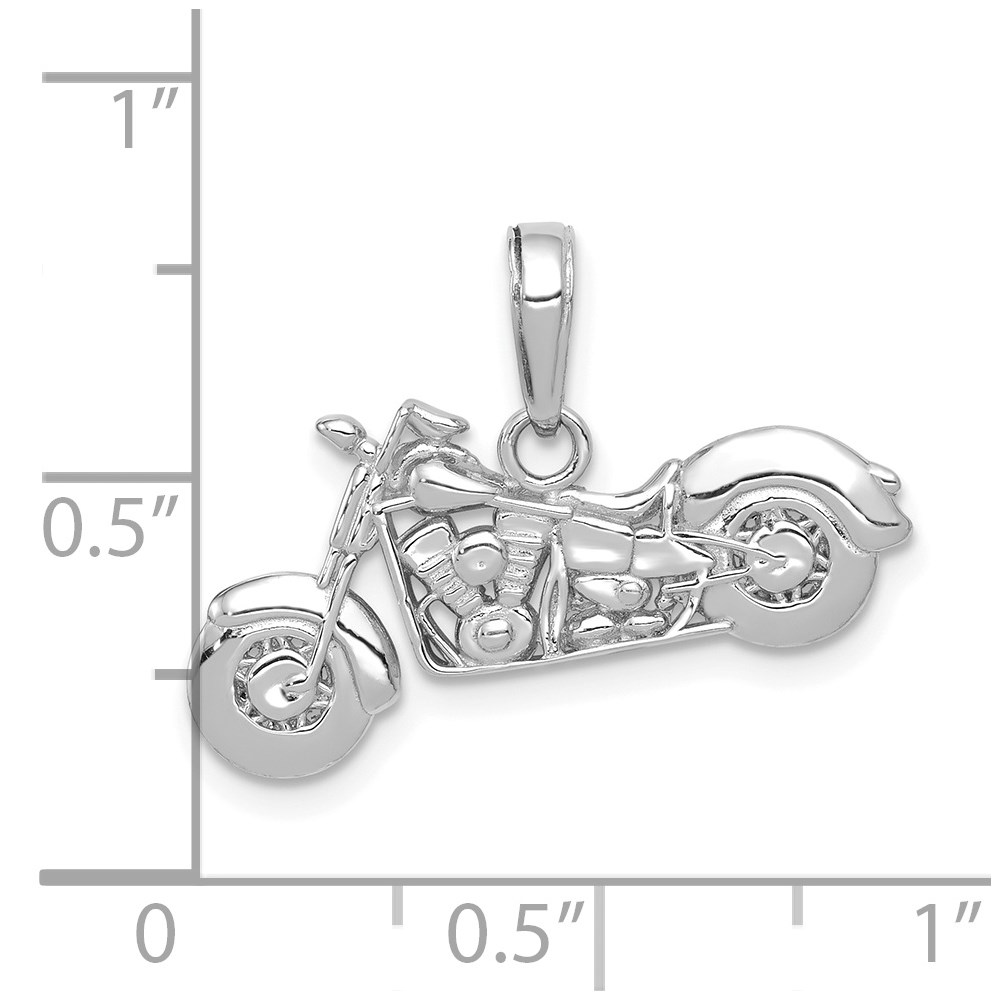 14K White Gold Polished and Textured 3-D Motorcycle Pendant