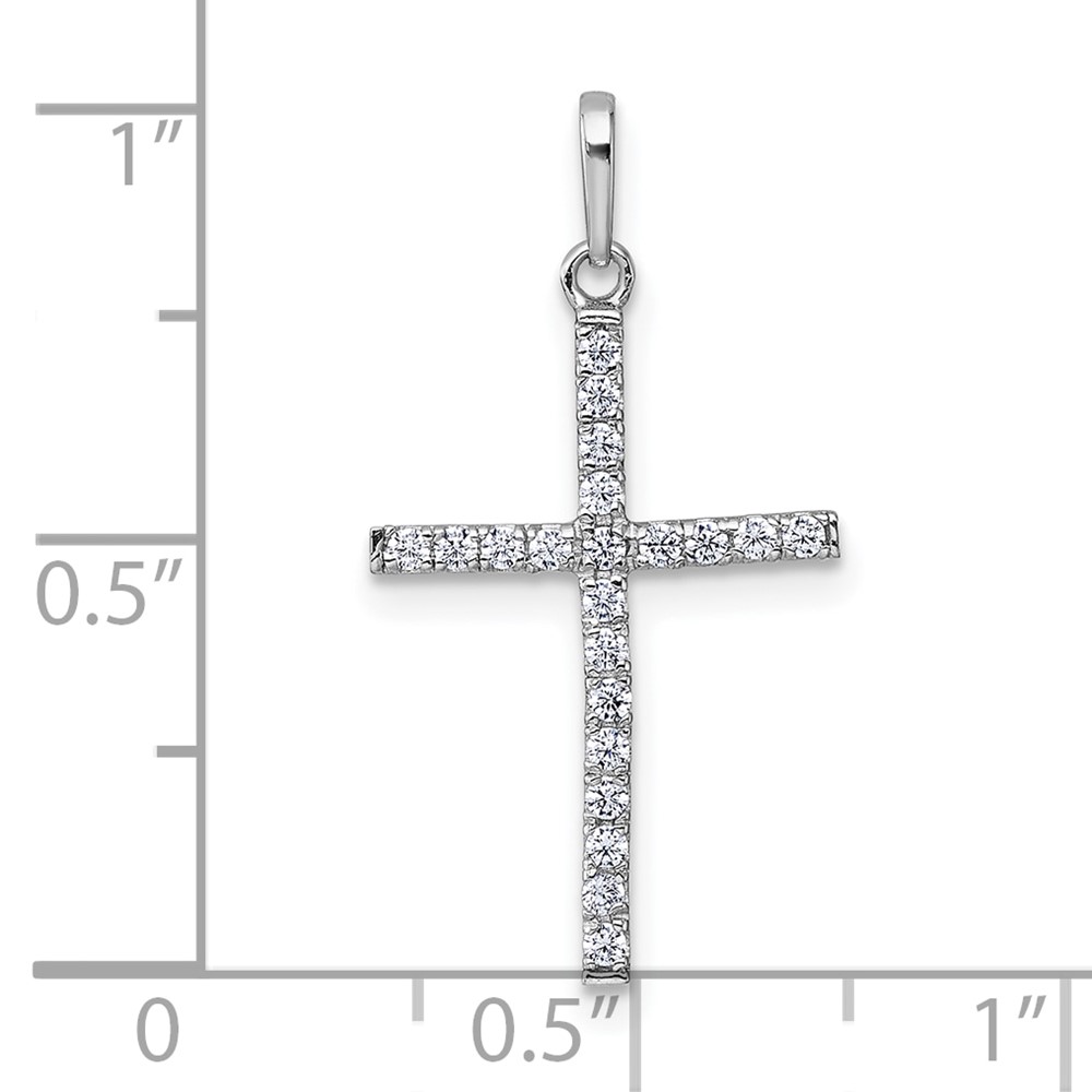 14k White Gold Polished CZ Latin Cross Pendant