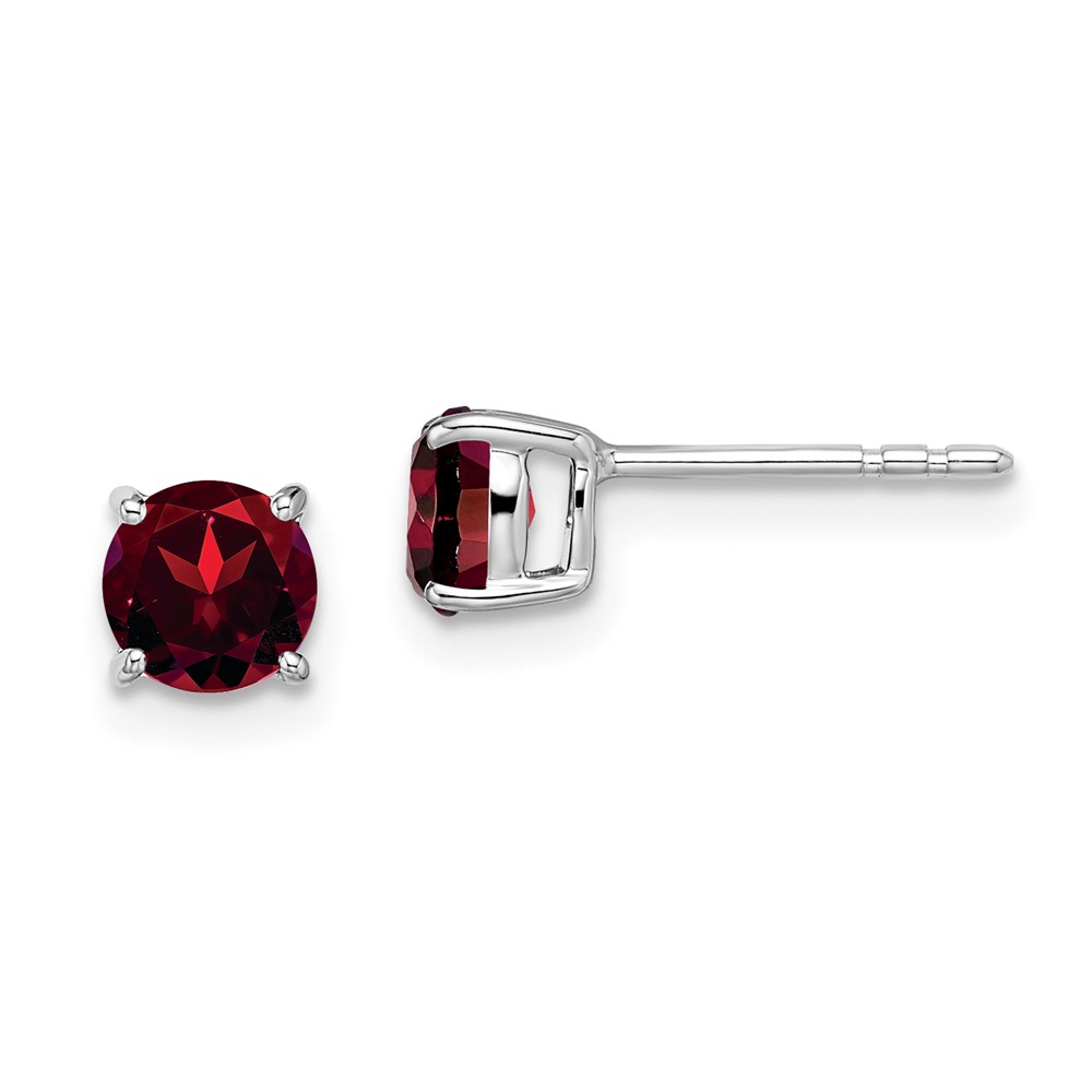 14k White Gold Round Garnet Earrings