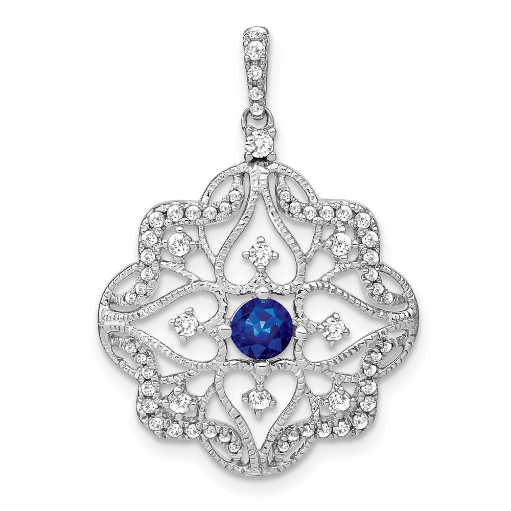 14k White Gold Sapphire and Diamond Vintage Filigree Pendant