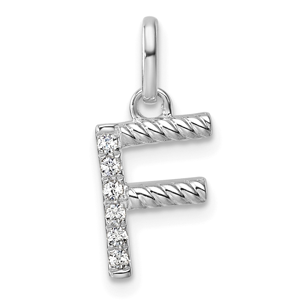 14k White Gold Twisted .05 ct. Diamond Initial F Charm