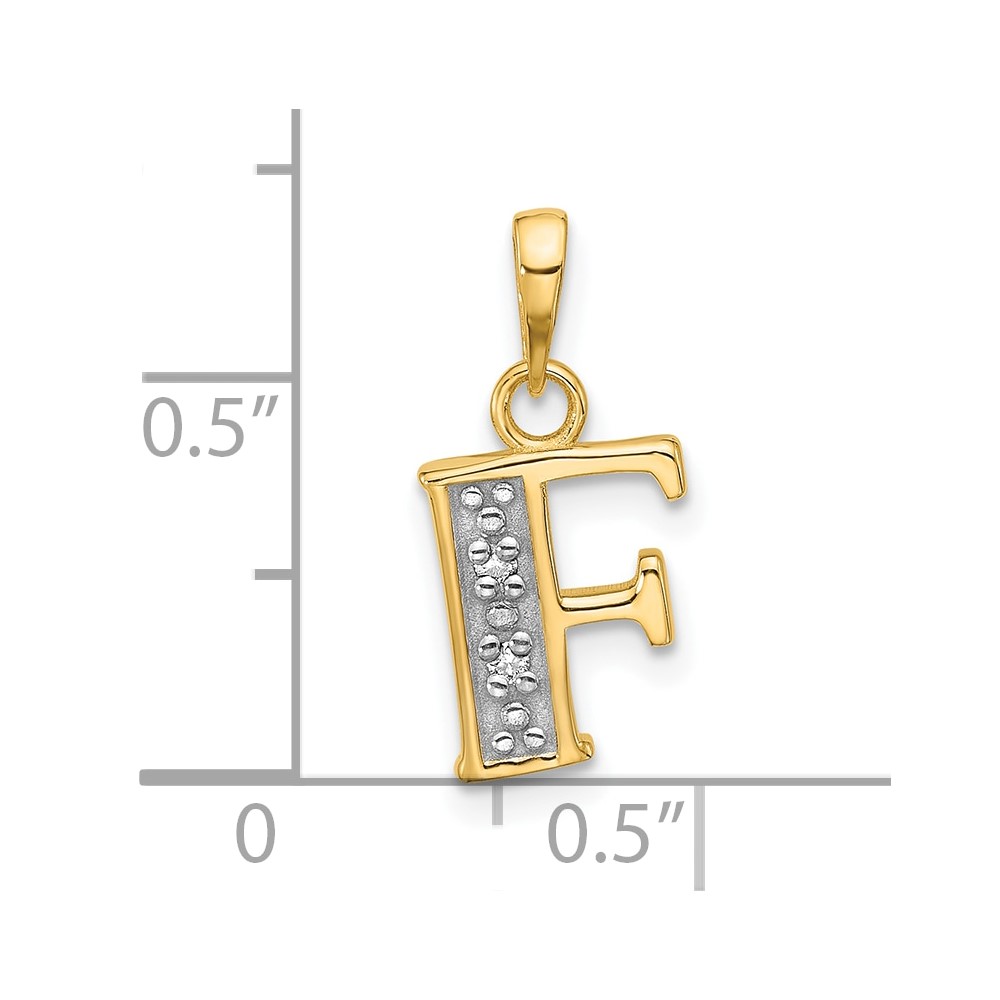 14K with Rhodium Diamond Letter F Initial Pendant