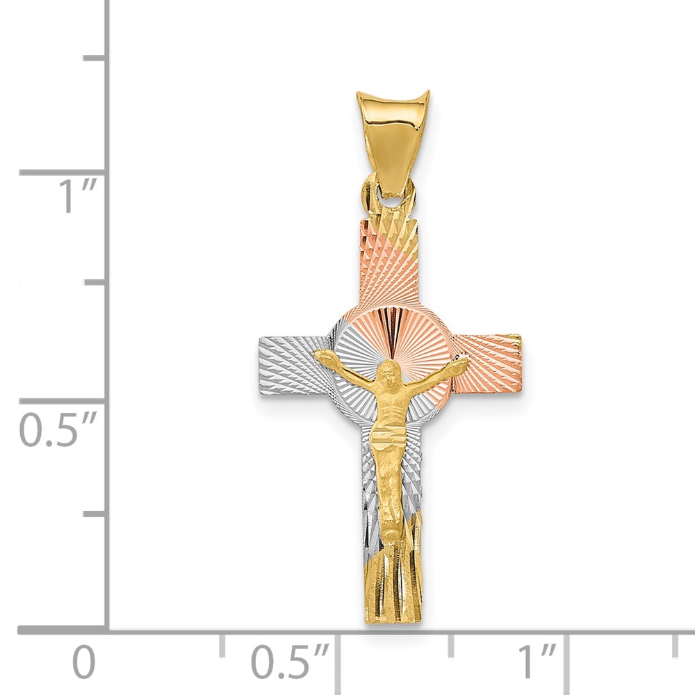 14K with Rose and White Rhodium Iona Crucifix Cross Pendant