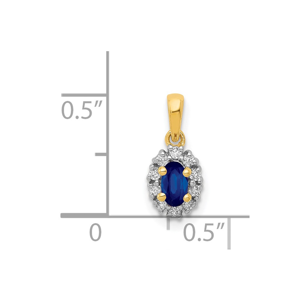 14k with White Rhodium Diamond and .32 Sapphire Oval Halo Pendant